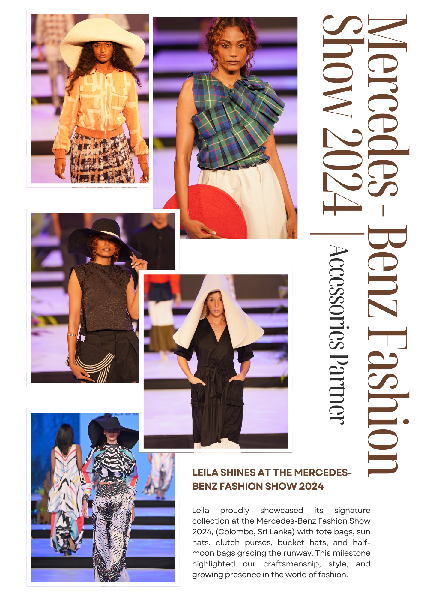Leila Lanka Pvt Ltd has been featured at leading industry events, both locally and internationally, reflecting our commitment to sustainable design and ethical craftsmanship. Our participation as an official accessory partner at Mercedes-Benz Fashion Week Colombo 2024 and our selection by the Sri Lankan Export Development Board to exhibit at the Hong Kong Trade Show 2025 highlight the brand’s growing global presence. This section documents key milestones where Leila Lanka has been recognized on prestigious platforms.