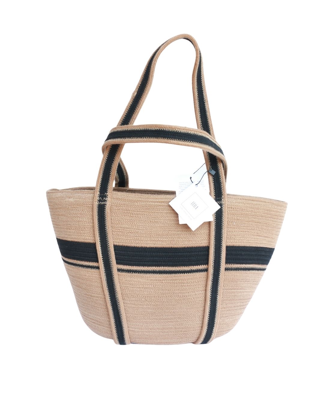 Elevate your style with this handcrafted beige cord tote, featuring sleek black lining for a sophisticated, luxury designer-inspired look.