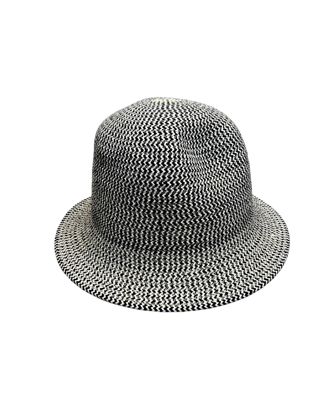 This handcrafted women's bucket hat features a stylish mix of black and white cord, offering a unique, bold accessory.