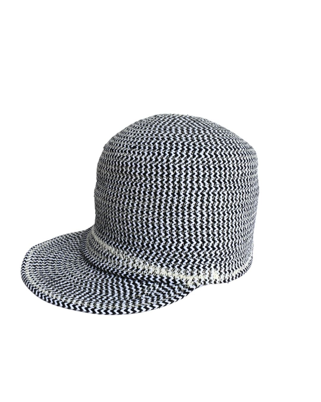 This handcrafted women's bucket hat features a stylish mix of black and white cord, offering a unique, eco-friendly accessory.