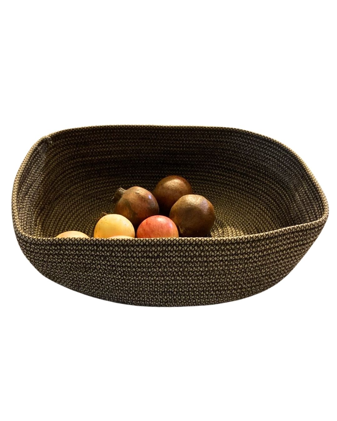 This handcrafted boat-shaped centrepiece, made from cord, features a dark bronze look, perfect for holding fruit.
