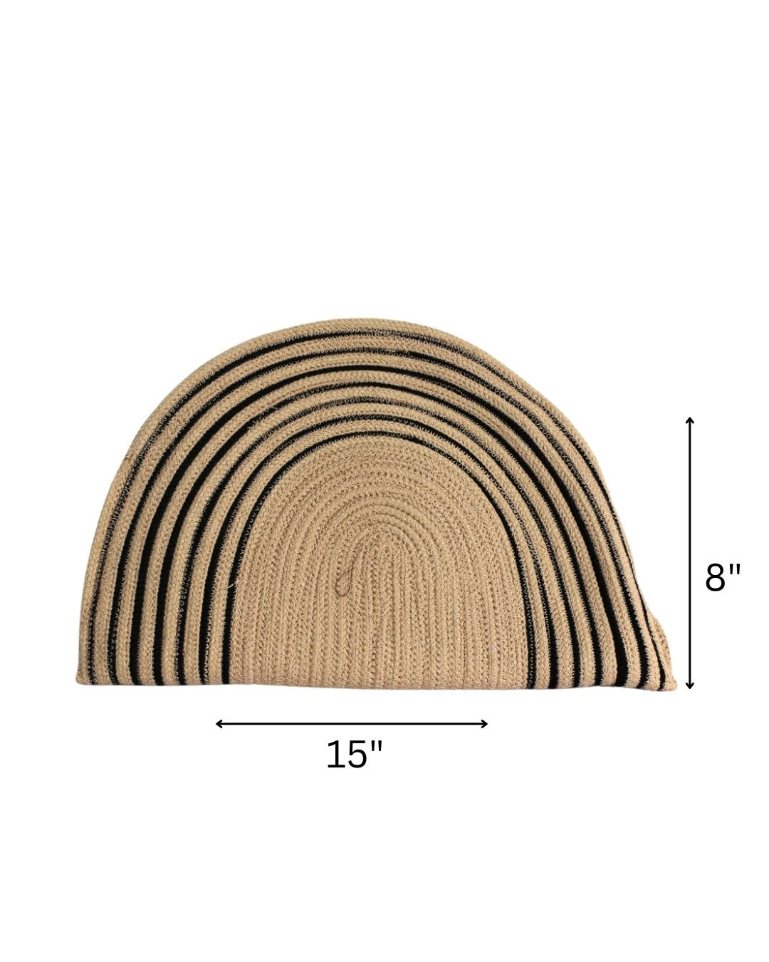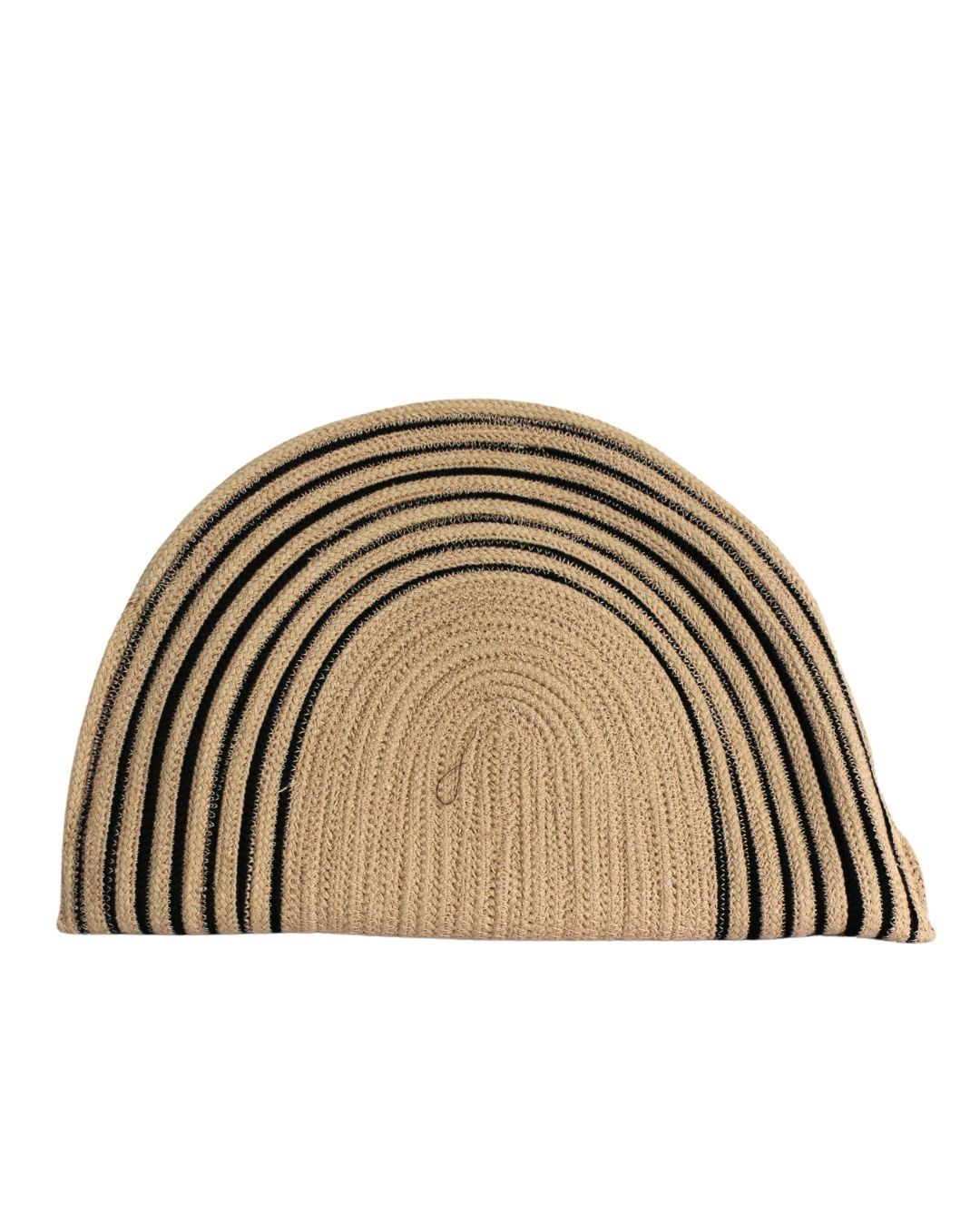 This chic half-moon clutch bag features natural beige cord with striking black accents, combining style, texture, and versatility.
