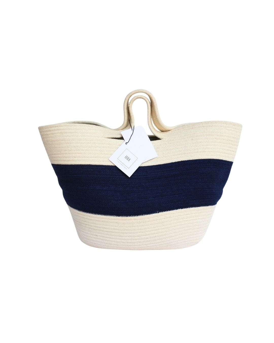 Stylish off-white cord tote bag with a bold black center band. Handmade, durable, and eco-friendly—perfect for everyday essentials.