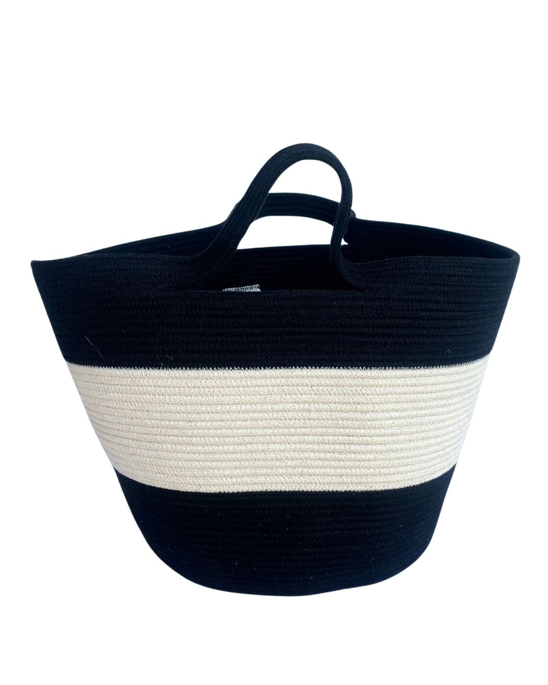 A stylish two-toned tote bag crafted from durable cord, featuring a sleek black and off-white design for versatile use.